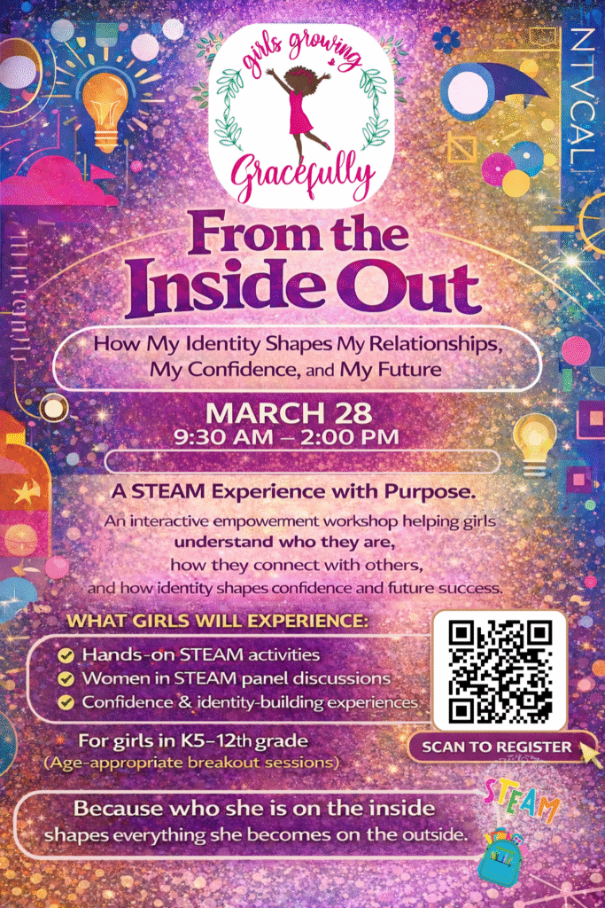 This year, Girls Growing Gracefully is excited to introduce our first STEAM-focused Identify Driven Girl Empowerment Workshop for elementary, middle, and high school girls. Through hands-on activities, conversations with women mentors and college students, and guided reflection, girls will explore how their individuality, confidence, and curiosity can shape their friendships, future careers, and impact in their communities—while strengthening the mother-daughter bond along the way.